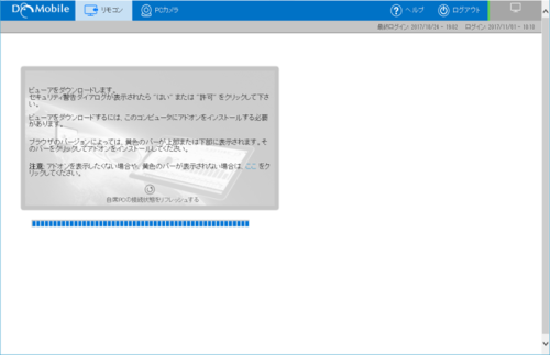 リモートコントロールのクライアントソフトウェアが、自動的にダウンロードされ、起動します。